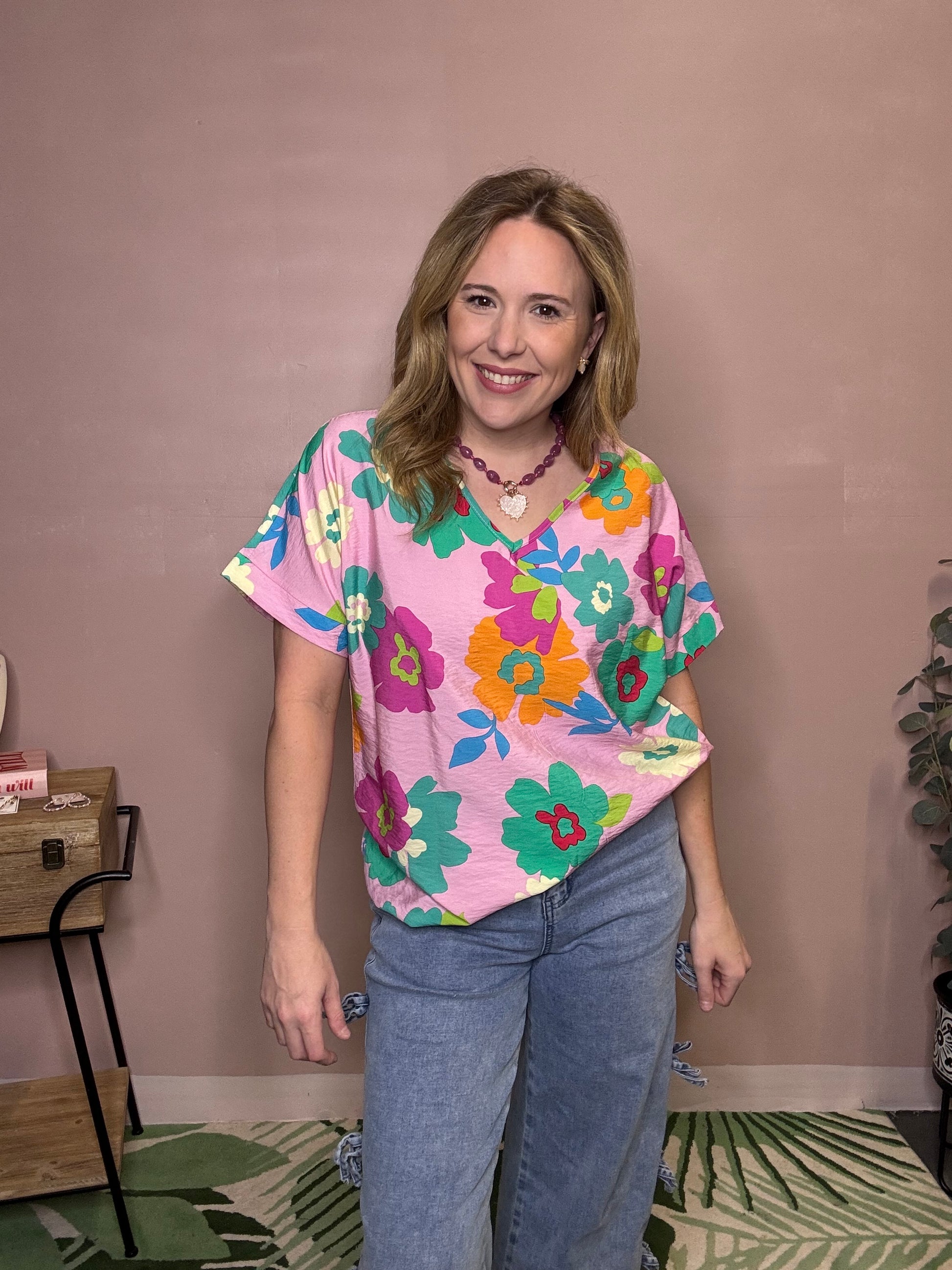 Bright Floral V-Neck Top