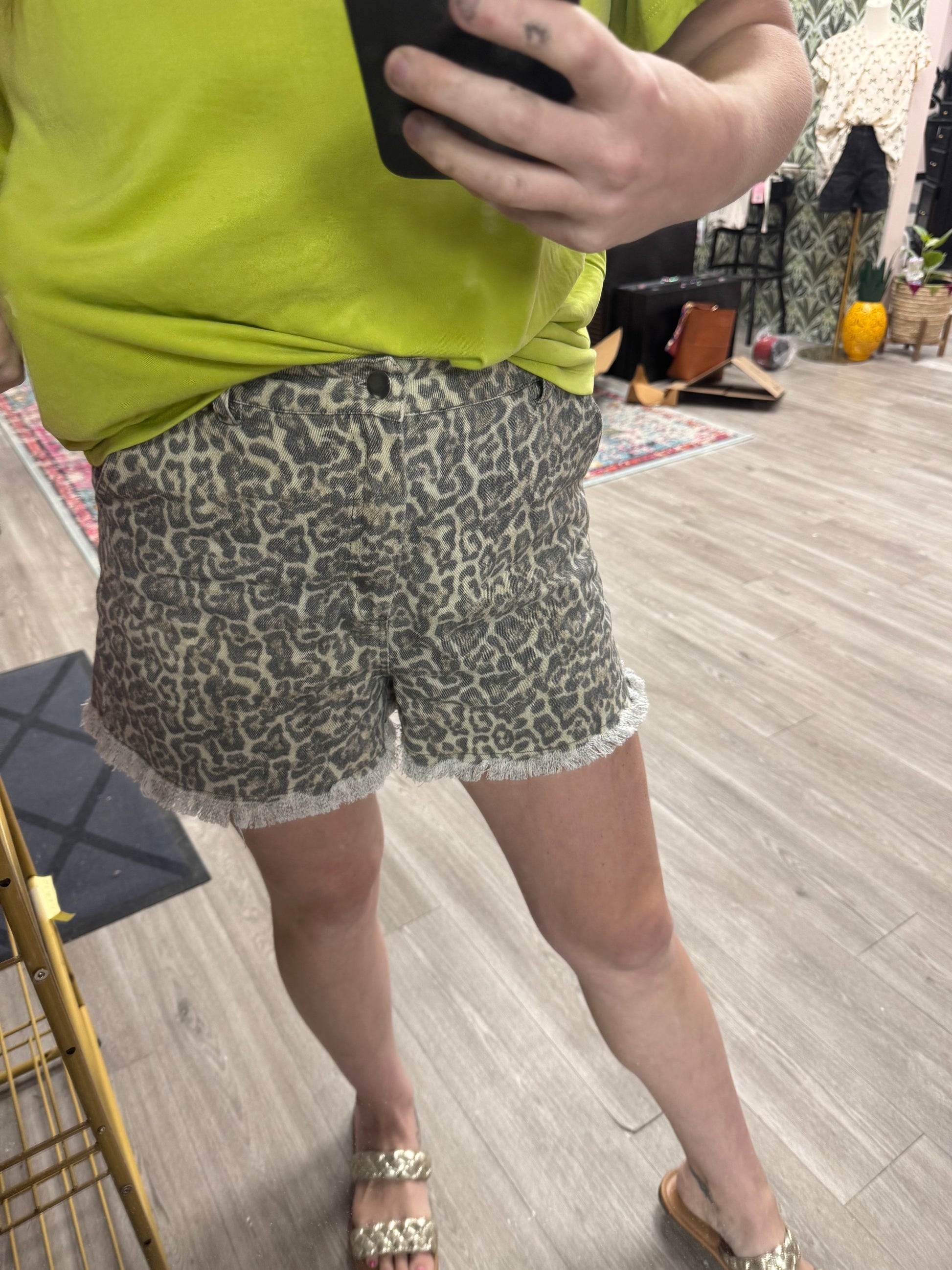 Wild but wearable — the Cool Cat Leopard Shorts are a closet must! With a neutral gray leopard print and a frayed hem, these cuties can be paired with anything from a bright tee to your fave denim jacket. We love them styled with a bold pink pop like shown here.