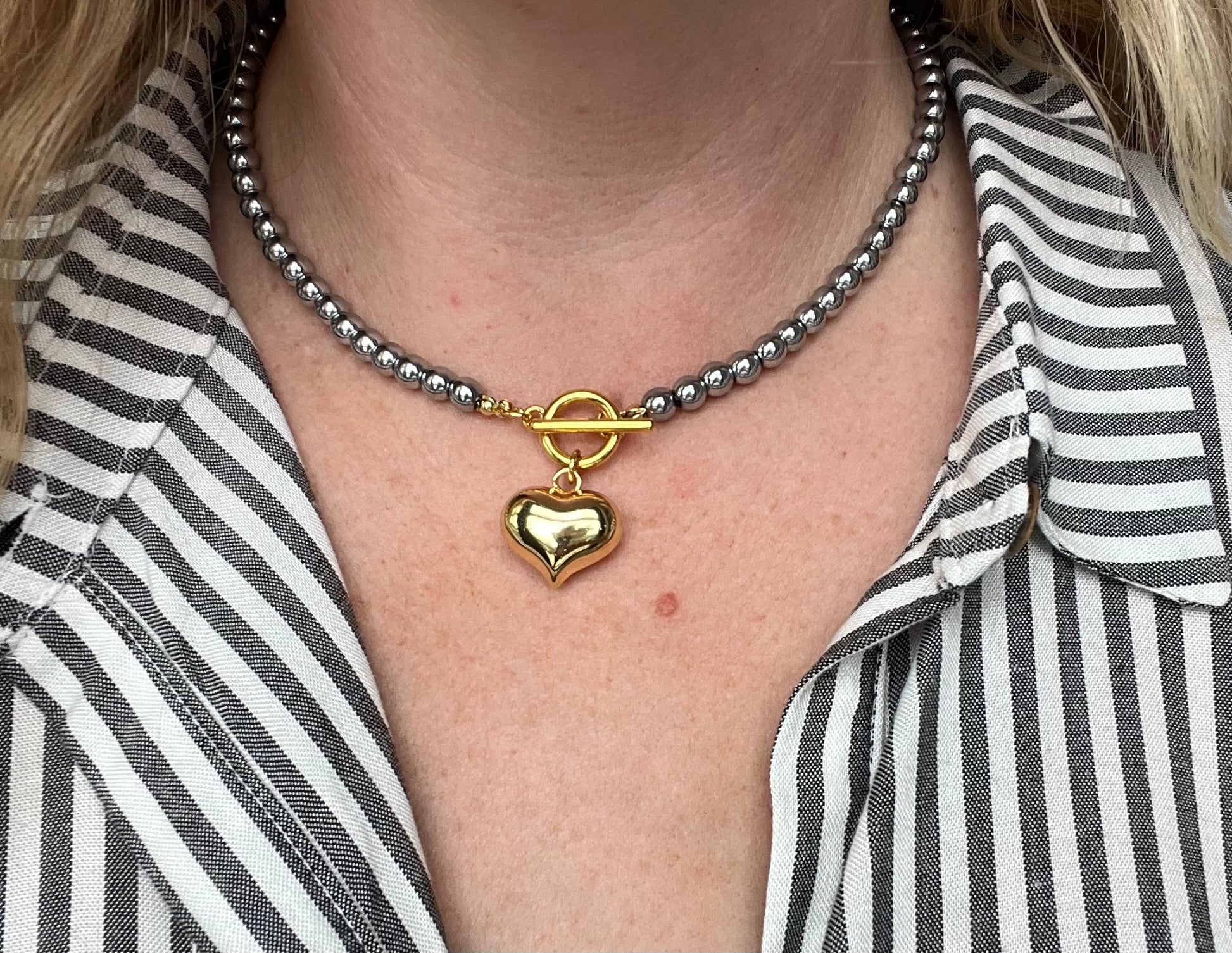 Silver Bead and Gold Heart Necklace