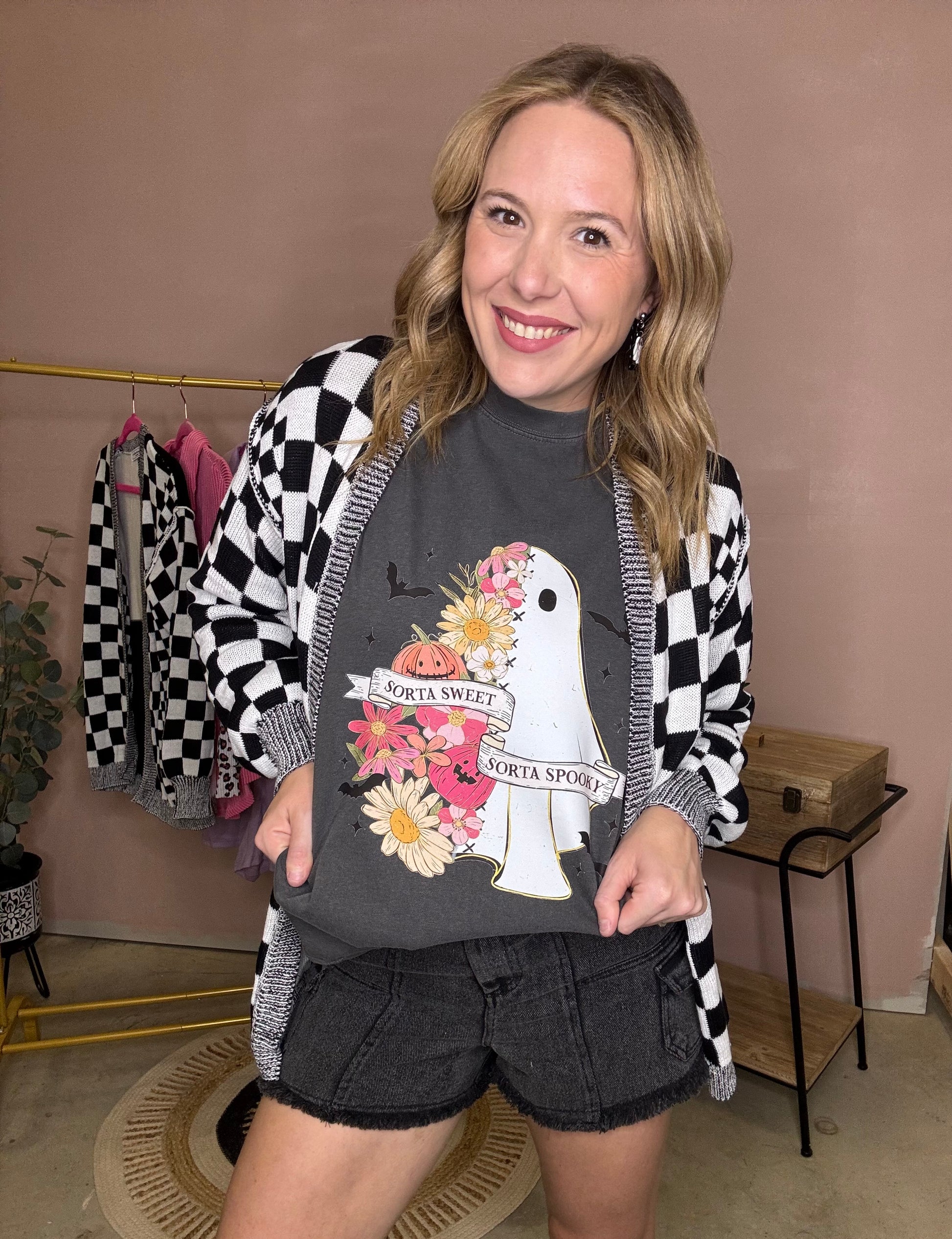 Sorta Sweet Sorta Spooky Ghost Graphic Tee – Charcoal